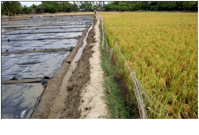 | জমি তৈরীর সময় ২/৩ বার স্বাদু পানি দিয়ে লবণাক্ত পানি বের করে দিলে জমির লবণাক্ততা অনেকটা কমে যায়। তাছাড়া কুশি, ফুল আসা ও পরিপক্কতার সময় লবণের মাত্রা ১০ ডিএস/মিটারের বেশী হলে স্বাদু পানি দিয়ে লবণাক্ততা কমিয়ে আনতে হবে। ধান পাকার ১০-১২ দিন আগে জমির পানি শুকিয়ে ফেলা ভাল। |